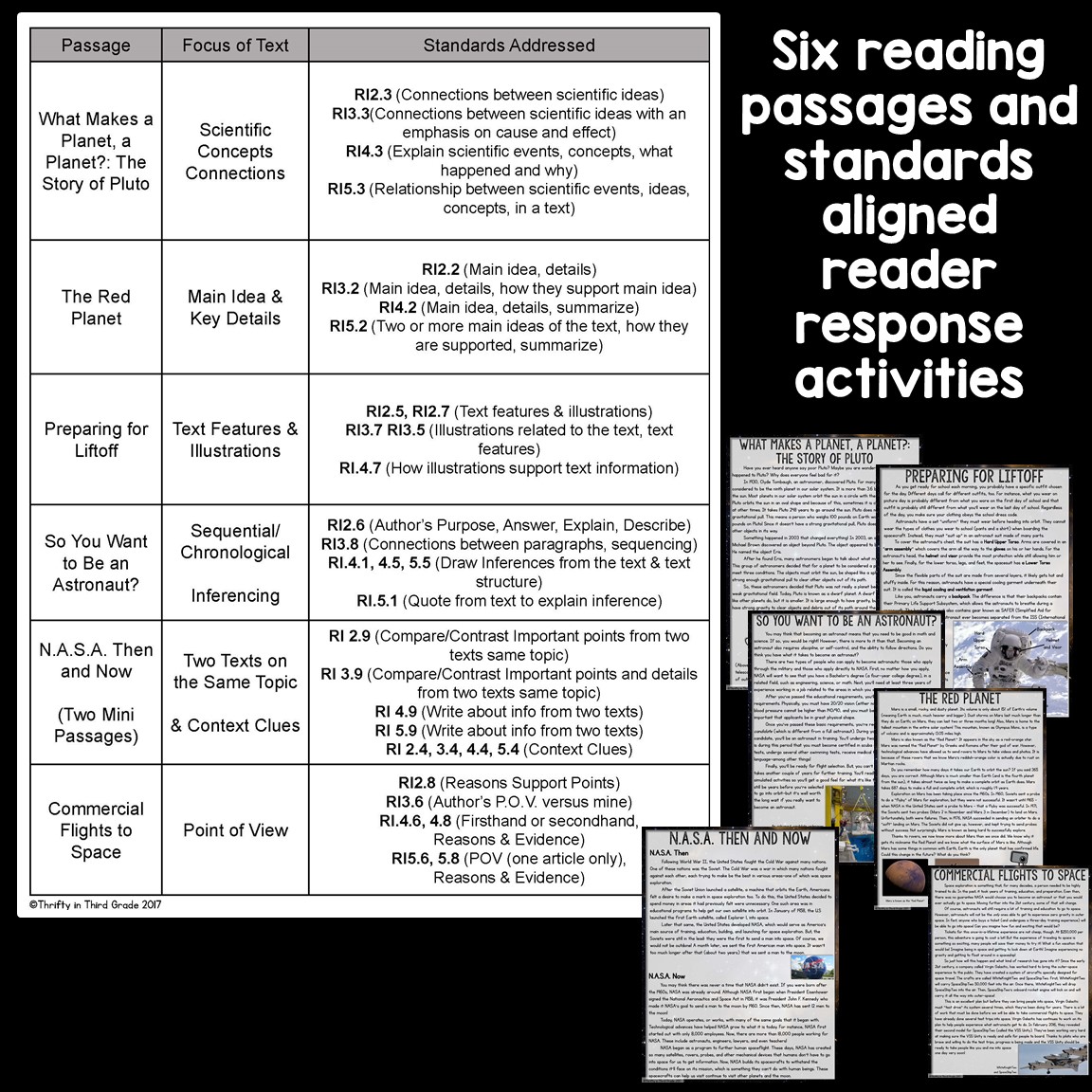 Students will read 6 passages and complete standards aligned reader response activities. Each passage has 2-4 options for reader response sheets. That way you can differentiate your instruction! The standards covered range from second through fifth grade.
