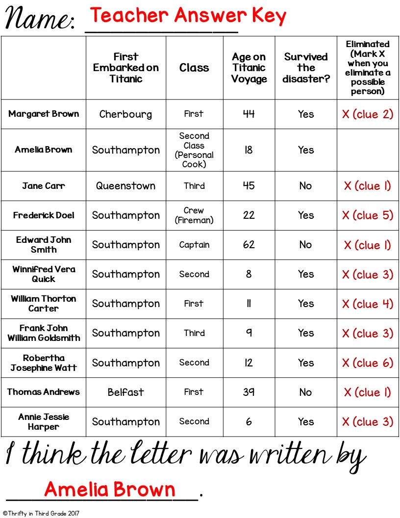 Once students complete this work, they will bring it to you to look over. I’ve included answer keys to make your life easier! Then, if you are satisfied with their work, you will give them a clue! They will use the clue to mark off some options on their elimination page. (This is how they solve the quest!) You can read the passages in any order, just be sure to give the clues in order 1-6.